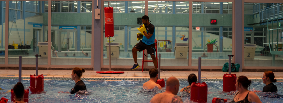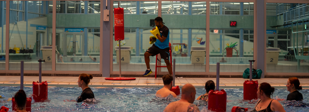 Met Aquaboksen wil het zwembad een nieuwe doelgroep aanspreken, waarbij naast vrouwen, ook vooral mannen worden aangespoord om de uitdaging aan te gaan. Deze sport is te beoefenen vanaf 15 jaar en is daarmee, net als FloatFit®, gericht op jongeren. “We willen jongeren laten ervaren dat sporten in het zwembad ook voor hun heel leuk is”, vertelt coördinator Exploitatie & Zwembaden Jeffrey Groeneveld. Om iedereen de kans te geven deze sport uit te proberen is de eerste les op 28 februari helemaal gratis. Kijk daarvoor snel op deze pagina en meld je met een account aan voor deze les. Let op! Er kunnen maximaal 20 deelnemers meedoen: VOL=VOL. Reserveren en een los kaartje kopen voor een reguliere les Aquaboksen doe je via mijn.sportbedrijf.nl.